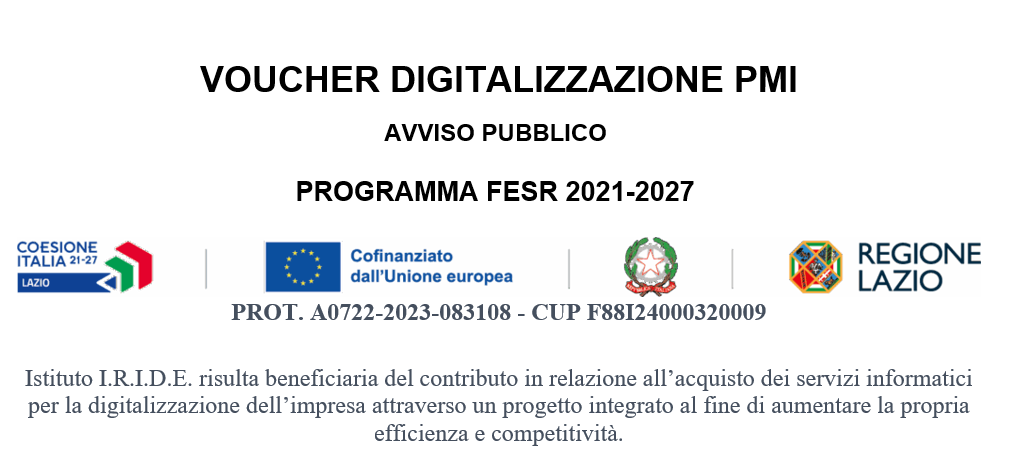 Istituto I.R.I.D.E. risulta beneficiaria del contributo in relazione all'acquisto dei servizi informatici per la digitalizzazione dell'impresa attraverso un progetto integrato al fine di aumentare la propria efficienza e competitività.